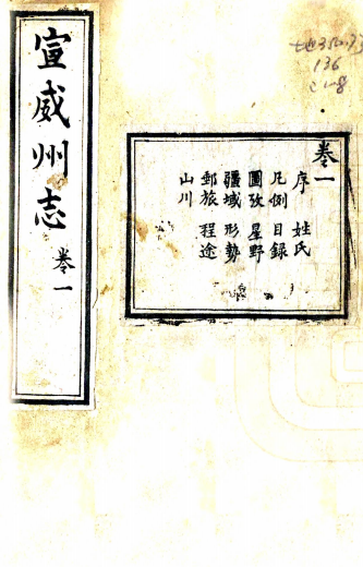 书名: [道光]宣威州志八卷(清)劉沛霖修 (清)朱光鼎纂 清道光二十四年(1844)刻本