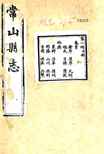 书名: [光绪]常山县志六十八卷首一卷末一卷(清)李瑞鍾纂修 清光緒十二年(1886)刻本