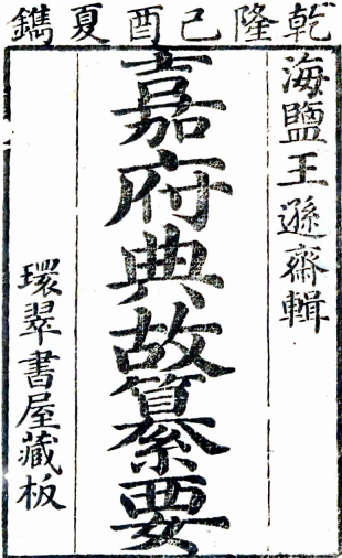 书名: 嘉府典故纂要八卷(清)王惟梅纂 清乾隆五十四年(1789)刻本