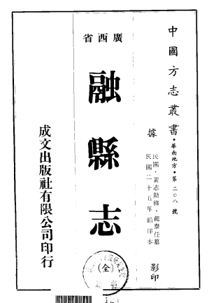 民国黄志勋修、龙泰任纂广西《融县(今隆安县)志》民国二十五年(1936)铅印