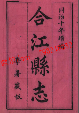 清•同治版合江县志编修于清同治十年(1871年),全书共54卷20余万字,主要记载了清嘉庆十七年以后至清同治十年共50年间合江的政治变革、经济发展、军事文化、社会风貌等史实,凸显了历史演变过程与地方特色。