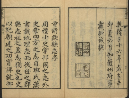 [乾隆]歙县志二十卷首一卷清張佩芳修 清劉大櫆等纂 清乾隆三十六年刻本 236M