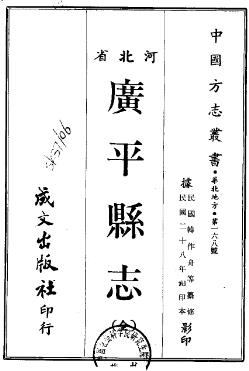 广平县志(全).pdf下载[民国]广平县志 卷数 十二卷 纂修 韩作舟 刊印 民国二十八年(1939年)