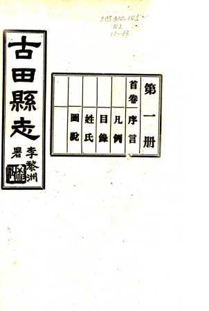 书名: [民国]古田县志三十八卷首一卷 黃澄淵[修]|余鍾英[纂] 民國三十一年古田縣修志委員會鉛印本