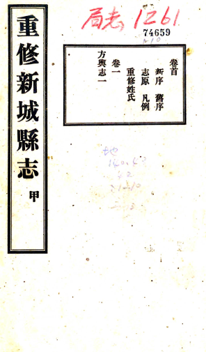 书名: 重修新城县志:[民国]:26卷,首1卷 袁勵傑修 民國二十二年[1933] 鉛印本