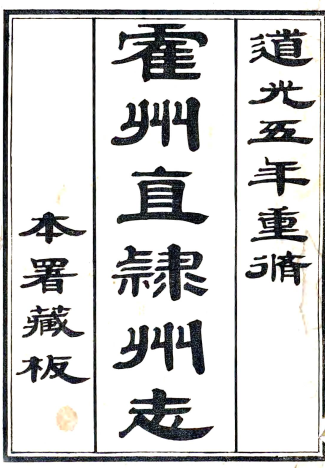 书名:[道光]直隶霍州志二十五卷首一卷 (清)崔允昭纂修 清道光六年(1826)刻本