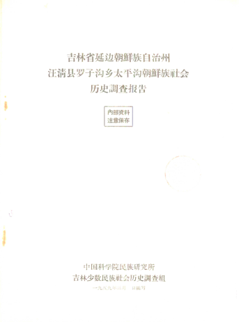 书名:《吉林省延边朝鲜族自治州汪清县罗子沟乡太平沟朝鲜族社会历史调查报告》