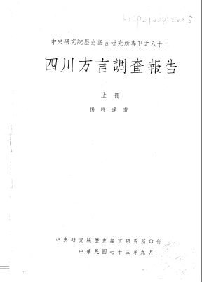 · 本杨时逢《四川方言调查报告》上下 四册_1984_PDF电子版是PDF电子版不是实体书,PDF电子版可以在电脑、手机上浏览,请您知晓。您可以联系我们查看更多本志的截图
