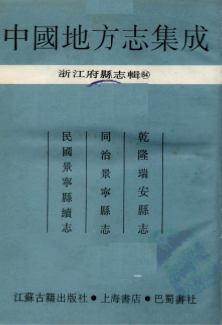 页码:本册包含:(乾隆瑞安县志 同治景宁县志 民国景宁县续志)三部县志