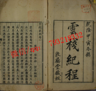 雲桟紀程. 巻1-8.清张邦伸撰.清乾隆五十九年敦彝堂刻本