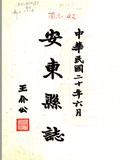 民国二十年年出版的《安东县志》,是一部介绍安东历史、沿革、社会、经济、文化各方面史料的地方志书。