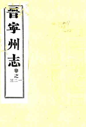 书名: [道光]晋宁州志十二卷(清)朱慶椿修 (清)陳金堂纂 清道光二十三年(1843)刻本