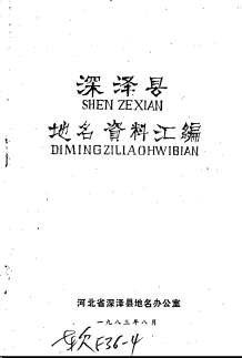 编纂单位:河北省深泽县地名办公室