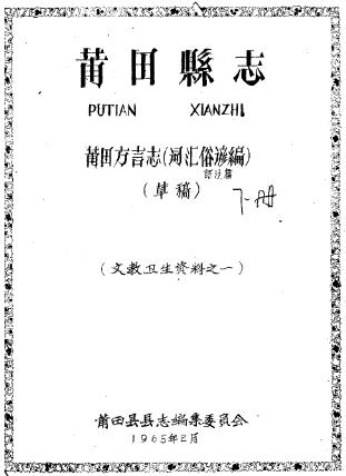 【书名】:《文教卫生资料之一 莆田县志 莆田方言志 词汇俗谚编 草稿》